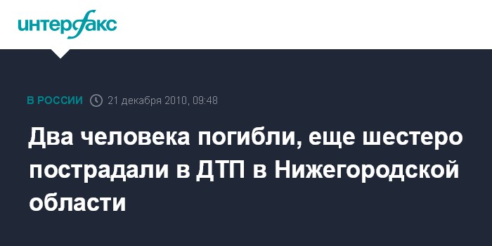 Два человека погибли, еще шестеро пострадали в ДТП в Нижегородской области