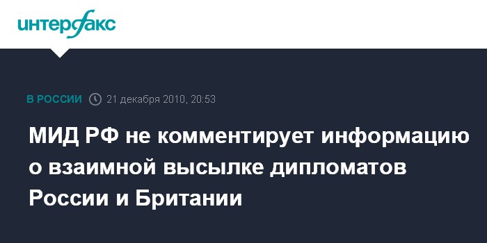 Москва. 21 декабря. INTERFAX.RU - МИД России не комментирует информацию о взаимной высылке российского и британского дипломатов.