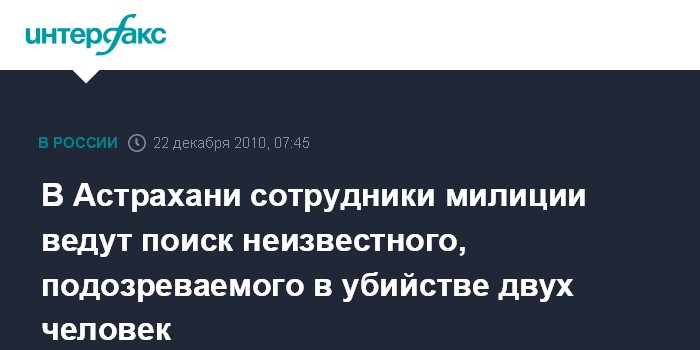 В Астрахани сотрудники милиции ведут поиск неизвестного, подозреваемого в убийстве двух человек