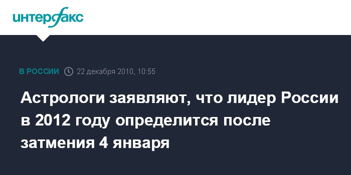 Астрологи заявляют, что лидер России в 2012 году определится после затмения 4 января
