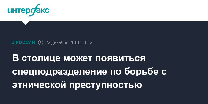 Москва. 22 декабря. INTERFAX.RU - В столичном ГУВД рассматривают вопрос о создании специализированного подразделения по борьбе с этнической преступностью, заявил глава ведомства Владимир Колокольцев.