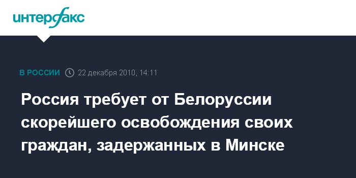 Россия требует от Белоруссии скорейшего освобождения своих граждан, задержанных в Минске