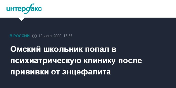 Москва. 10 июня. INTERFAX.RU - Ученик второго класса Ачаирской средней школы (Омская область) после прививки от клещевого энцефалита был госпитализирован в детскую городскую клиническую больницу с последующим обследованием в психиатрической клинике, сообщает пресс-служба областной прокуратуры.