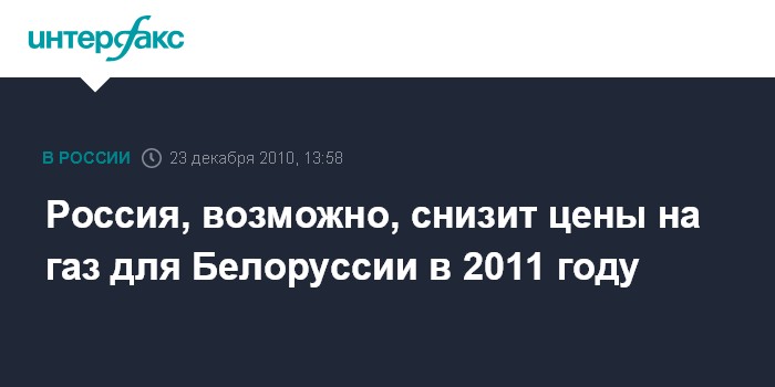 Россия, возможно, снизит цены на газ для Белоруссии в 2011 году
