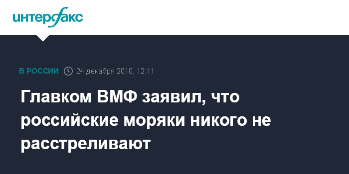Москва. 24 декабря. INTERFAX.RU - Российские моряки не расстреливали пиратов в Аденском заливе, заявил в пятницу "Интерфаксу" главком ВМФ Владимир Высоцкий в пятницу.