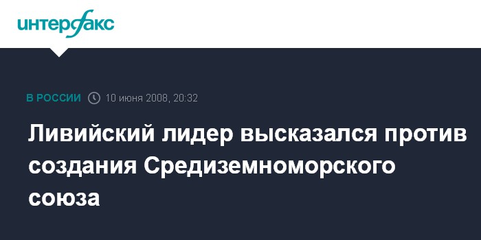 Триполи. 10 июня. ИНТЕРФАКС - Проект создания Средиземноморского союза невыгоден для арабских и африканских стран, заявил во вторник в Триполи ливийский лидер Муамар Каддафи.