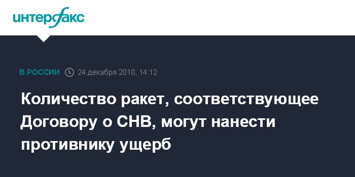 Москва. 24 декабря. INTERFAX.RU - Предельные уровни развертывания ракет в Договоре об СНВ позволяют нанести неприемлемый ущерб стране-агрессору в любых условиях, заявил глава Минобороны РФ Анатолий Сердюков.