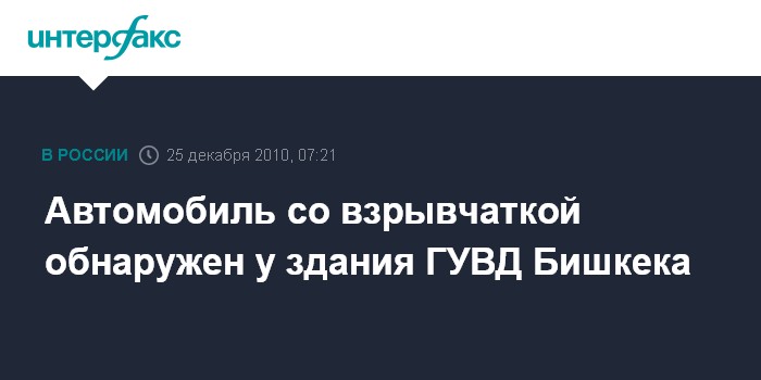 Бишкек. 25 декабря. ИНТЕРФАКС – У здания ГУВД Бишкека обнаружен автомобиль со взрывчаткой, сообщили в субботу в пресс-службе МВД Киргизии.