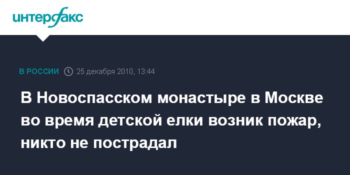 В Новоспасском монастыре в Москве во время детской елки возник пожар, никто не пострадал