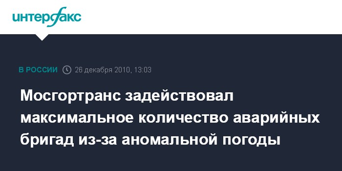 Москва. 26 декабря. INTERFAX.RU - На столичные дороги для ликвидации последствий обрывов проводов наземного электрического транспорта ГУП "Мосгортранс" вывел максимальное количество аварийных бригад.