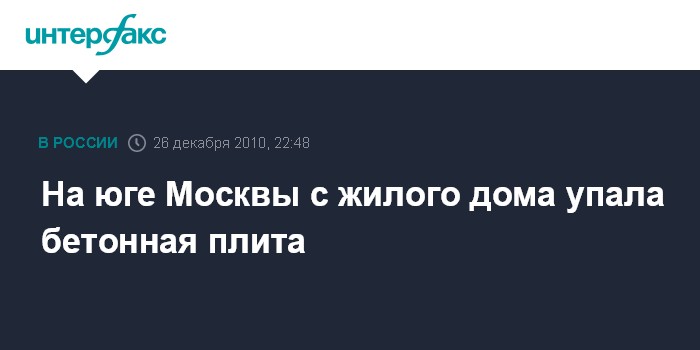 Москва. 26 декабря. INTERFAX.RU - На юге Москвы с технического этажа 12-этажного дома рухнула бетонная плита, сообщил "Интерфаксу" начальник пресс-службы ГУ МЧС по Москве Евгений Бобылев.