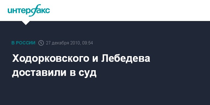 Москва. 27 декабря. INTERFAX.RU - Экс-главу компании "ЮКОС" Михаила Ходорковского и бывшего главу МФО "МЕНАТЕП" Платона Лебедева привезли к Хамовническому суду, где в понедельник начинается оглашение приговора ему по так называемому "второму делу" "ЮКОСа".