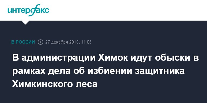 В администрации Химок идут обыски в рамках дела об избиении защитника Химкинского леса