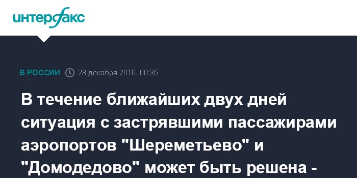 В течение ближайших двух дней ситуация с застрявшими пассажирами аэропортов "Шереметьево" и "Домодедово" может быть решена - РСТ