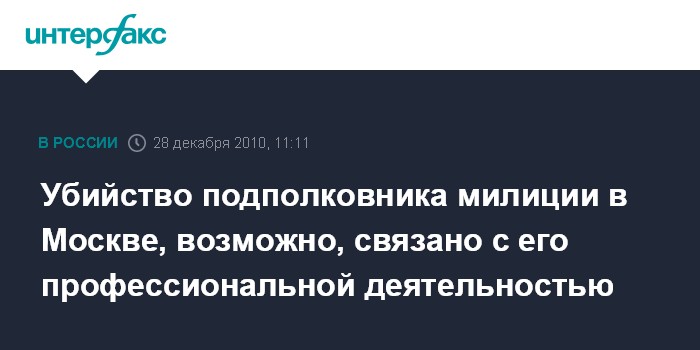 Убийство подполковника милиции в Москве, возможно, связано с его профессиональной деятельностью