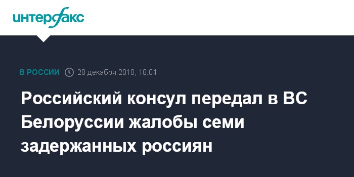 Минск. 28 декабря. INTERFAX.RU - Обращения семи из 11 задержанных в Минске граждан России переданы во вторник в Верховный суд Белоруссии, сообщил агентству "Интерфакс-Запад" советник посольства России в Минске Вадим Гусев.