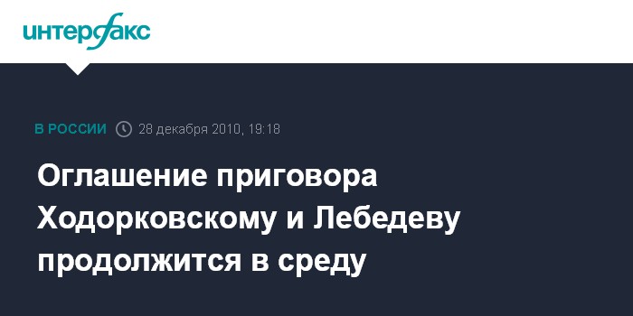 Москва. 28 декабря. INTERFAX.RU - Хамовнический суд Москвы в среду продолжит оглашение приговора экс-главе НК "ЮКОС" Михаилу Ходорковскому и бывшему руководителю МФО "МЕНАТЕП" Платону Лебедеву.