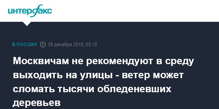 Москвичам не рекомендуют в среду выходить на улицы - ветер может сломать тысячи обледеневших деревьев