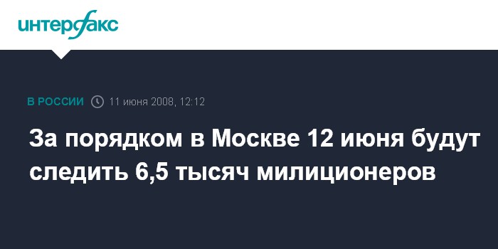 Москва. 11 июня. INTERFAX.RU - Во время празднования Дня России 12 июня в Москве в обеспечении общественного порядка будут задействованы 6560 сотрудников правоохранительных органов. Об этом сообщил "Интерфаксу" начальник управления информации и общественных связей ГУВД столицы Виктор Бирюков.