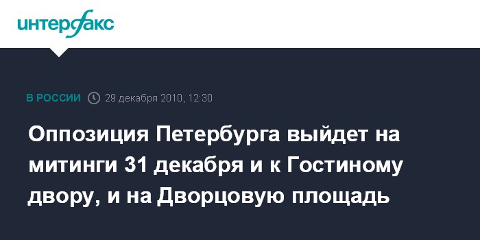 Санкт-Петербург. 29 декабря. INTERFAX.RU - Представители двух оппозиционных лагерей Петербурга окончательно определились с планами митингов в центре города в предновогодний вечер в рамках "Стратегии-31".
