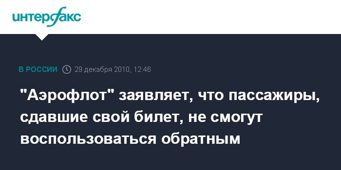 "Аэрофлот" заявляет, что пассажиры, сдавшие свой билет, не смогут воспользоваться обратным