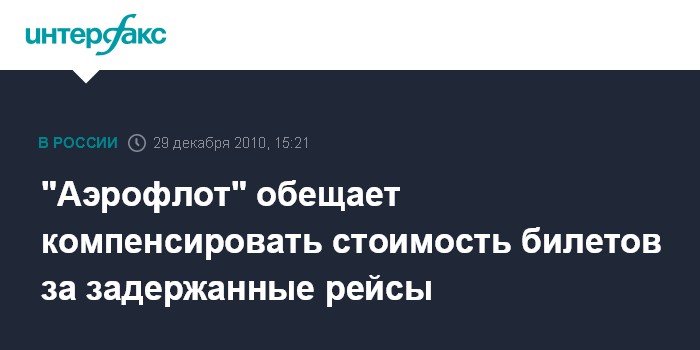 Москва. 29 декабря. INTERFAX.RU - Аэрофлот компенсирует стоимость билетов пассажирам, которые вынуждены были сутками ожидать вылета своих рейсов из-за сложных погодных условий, заявил глава компании Виталий Савельев.