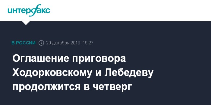 Оглашение приговора Ходорковскому и Лебедеву продолжится в четверг