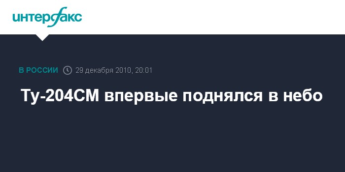 Москва. 29 декабря. INTERFAX.RU - Состоялся первый испытательный полет авиалайнера Ту-204СМ, сообщила в среду Объединенная авиастроительная корпорация (ОАК).