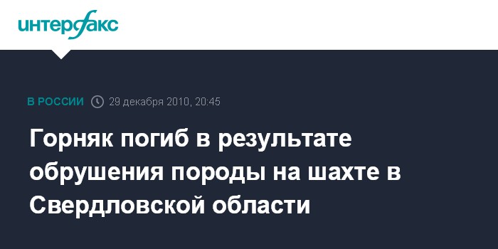 Горняк погиб в результате обрушения породы на шахте в Свердловской области