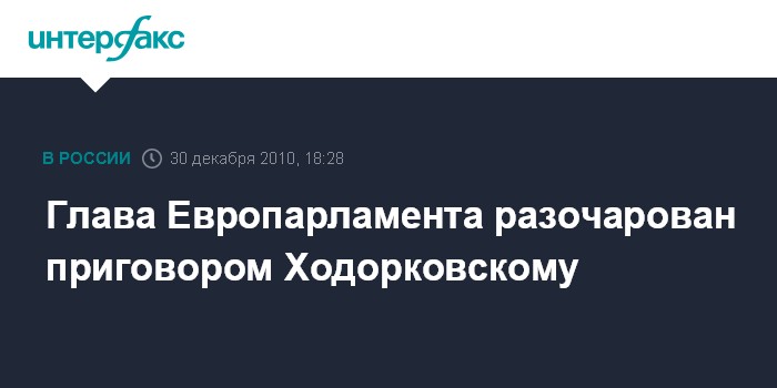 Брюссель. 30 декабря. INTERFAX.RU - Председатель Европарламента Ежи Бузек выразил разочарование в связи с новым приговором Михаилу Ходорковскому и Платону Лебедеву, согласно которому они должны провести в заключении 14 лет.