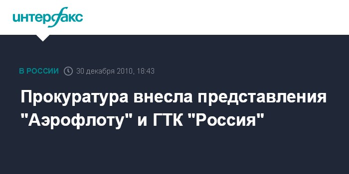 Прокуратура внесла представления "Аэрофлоту" и ГТК "Россия"