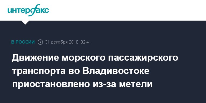 Владивосток. 31 декабря. ИНТЕРФАКС-ДАЛЬНИЙ ВОСТОК - Снегопад и штормовой ветер стали причинами временной остановки в работе морского пассажирского транспорта во Владивостоке, сообщает управление транспорта администрации города.