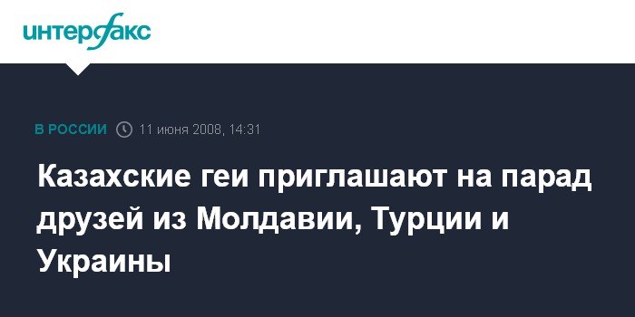 Алматы (Алма-Ата). 11 июня. INTERFAX.RU - В Алматы 21 июня пройдет первый казахстанский гей-парад, говорится в заявлении общественной организации лесбиянок, геев, бисексуалов и трансгендеров Казахстана (ЛГБТ-сообщество).