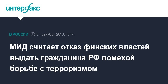 МИД считает отказ финских властей выдать гражданина РФ помехой борьбе с терроризмом