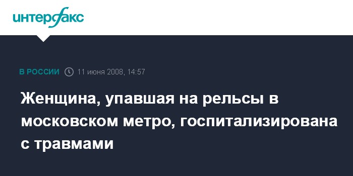 Женщина, упавшая на рельсы в московском метро, госпитализирована с травмами