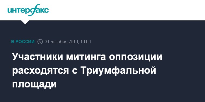 Москва. 31 декабря. INTERFAX.RU - Митинг оппозиционеров на Триумфальной площади, на котором выступали Людмила Алексеева, Лев Пономарев, Борис Немцов и другие, завершен, передает корреспондент "Интерфакса".