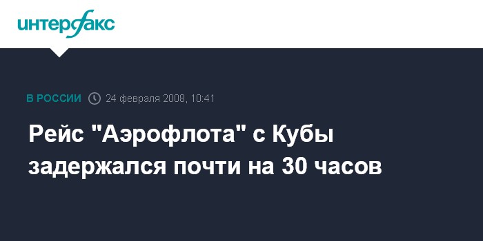 Гавана/Москва. 24 февраля. INTERFAX.RU - Рейс №334 авиакомпании "Аэрофлот", который должен был вылететь из Гаваны в Москву в пятницу, был задержан в кубинском аэропорту почти на 30 часов из-за технических неполадок.