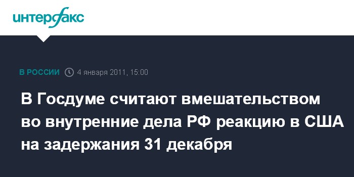 В Госдуме считают вмешательством во внутренние дела РФ реакцию в США на задержания 31 декабря
