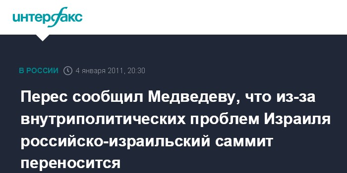 Перес сообщил Медведеву, что из-за внутриполитических проблем Израиля российско-израильский саммит переносится