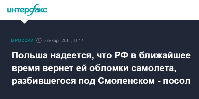 Польша надеется, что РФ в ближайшее время вернет ей обломки самолета, разбившегося под Смоленском - посол