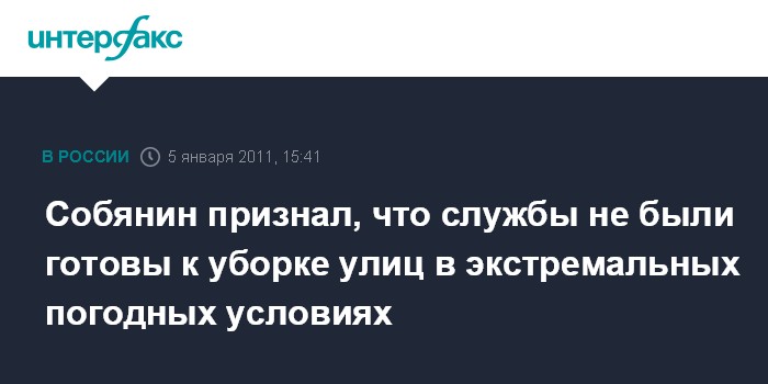 Собянин признал, что службы не были готовы к уборке улиц в экстремальных погодных условиях