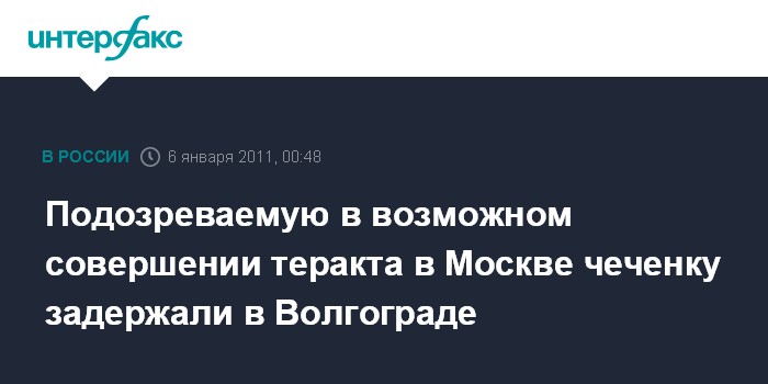 Москва. 6 января. INTERFAX.RU - В Волгограде задержана уроженка Чечни, которая может быть причастна к подготовке взрыва в Москве, сообщил "Интерфаксу" источник в правоохранительных органах.