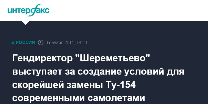 Гендиректор "Шереметьево" выступает за создание условий для скорейшей замены Ту-154 современными самолетами