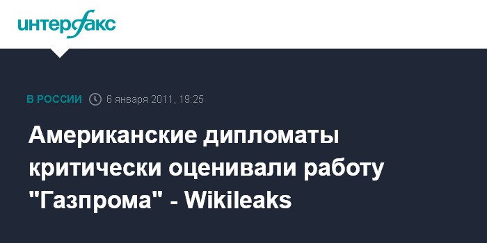 Американские дипломаты критически оценивали работу "Газпрома" - Wikileaks