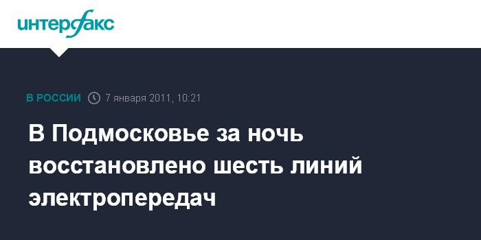 Он напомнил, что все объекты компании были подключены еще накануне, однако специалисты продолжают работать над восстановлением "уверенного" энергоснабжения в Московской области. "За прошедшую ночь было восстановлено шесть линий электропередач", - добавил Струговец.