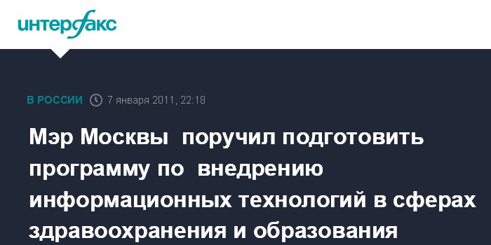 Мэр Москвы поручил подготовить программу по внедрению информационных технологий в сферах здравоохранения и образования