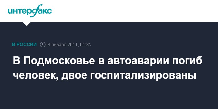 Москва. 8 января. ИНТЕРФАКС - На северо-востоке Московской области в дорожно-транспортном происшествии погиб один человек, двое пострадали.