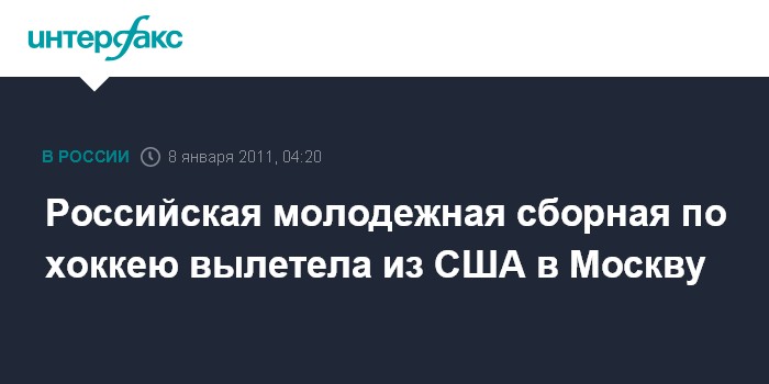 Лондон. 8 января. ИНТЕРФАКС - Игроки молодежной сборной России по хоккею, занявшие первое место на проходившем в США чемпионате мира, в пятницу вечером вылетели в Москву, сообщает британская телерадиовещательная корпорация Би-Би-Си в субботу.