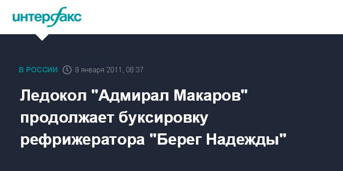 Южно-Сахалинск. 9 января. ИНТЕРФАКС - ДАЛЬНИЙ ВОСТОК - Ледокол "Адмирал Макаров" в настоящее время продолжает проводку транспортного рефрижератора "Берег Надежды".
