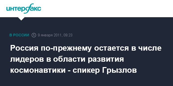 Россия по-прежнему остается в числе лидеров в области развития космонавтики - спикер Грызлов